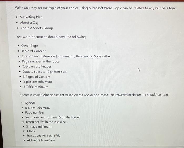 Solved Write An Essay On The Topic Of Your Choice Using Chegg Com